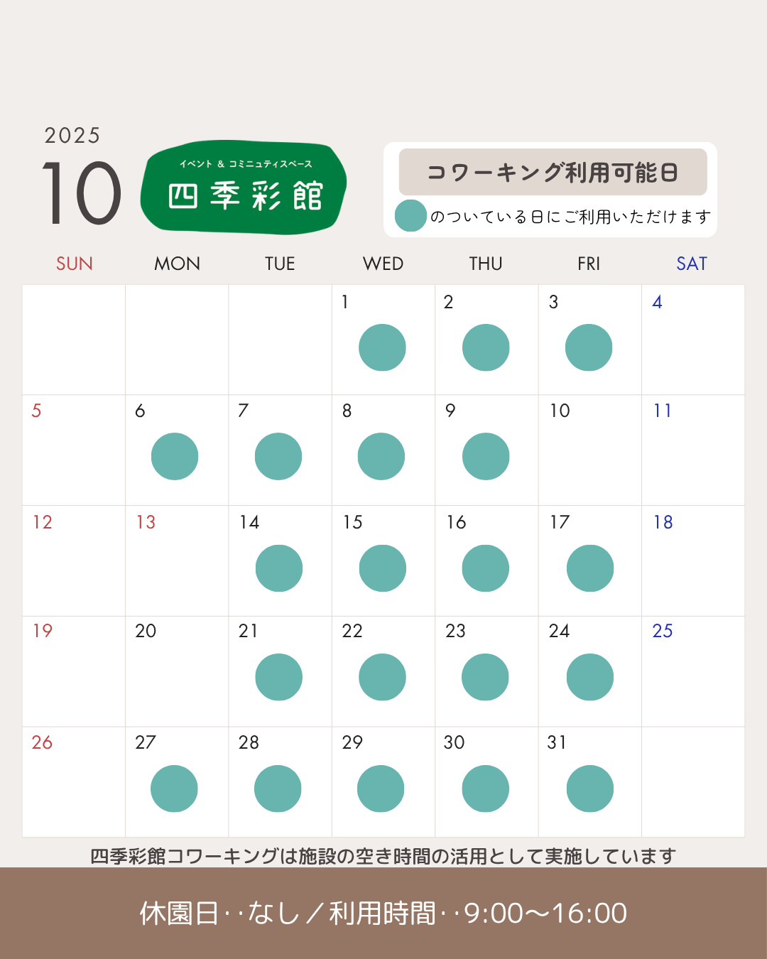 施設レンタルの無い日にはコワーキング(ドロップイン)利用ができます。