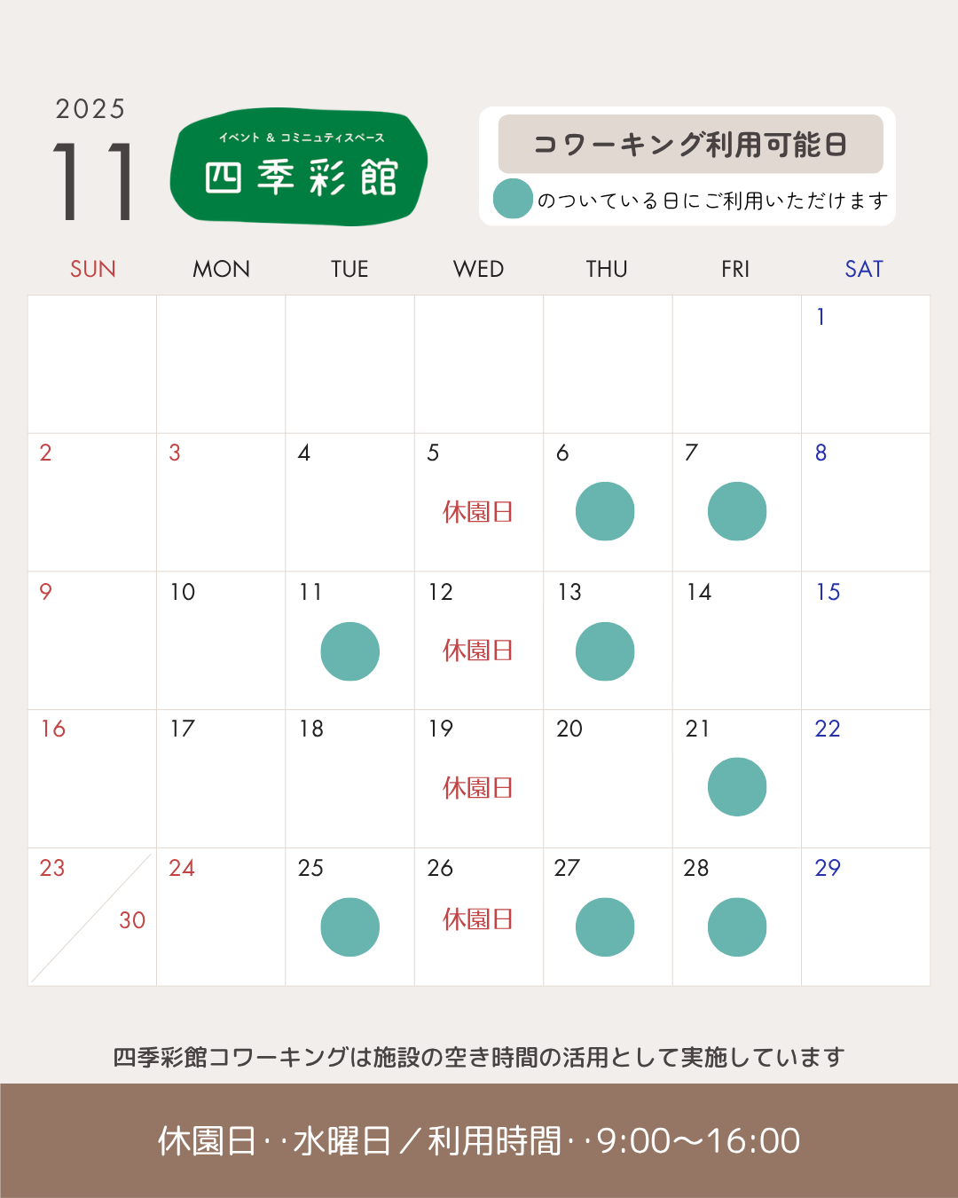 施設レンタルの無い日にはコワーキング(ドロップイン)利用ができます。