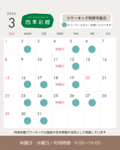 3月のコワーキング利用可能日(一覧)