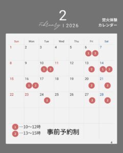 【事前予約制 】焚火体験 2026年2月