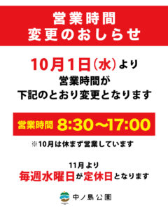 10月より営業時間が変わります。